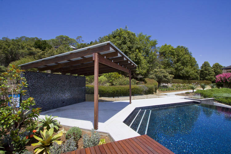 The pool's curved spillway is certainly a key feature as it faces the house at a 45 degree angle, which creates different viewpoints as you walk along the veranda of the property. The spillway leading into the wading pool also acts as a feature wall, which creates a fantastic visual effect.